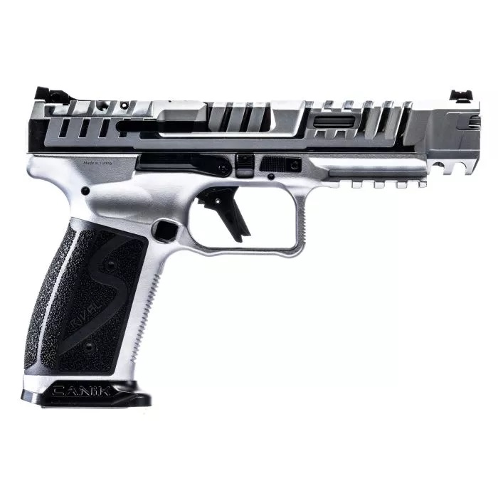 CANIK SFx RIVAL-S Pistol – Chrome | 9mm | 5″ Barrel | 2 – 18rd Mag | Optic Cut w/ Co-witness Sights | Steel Frame