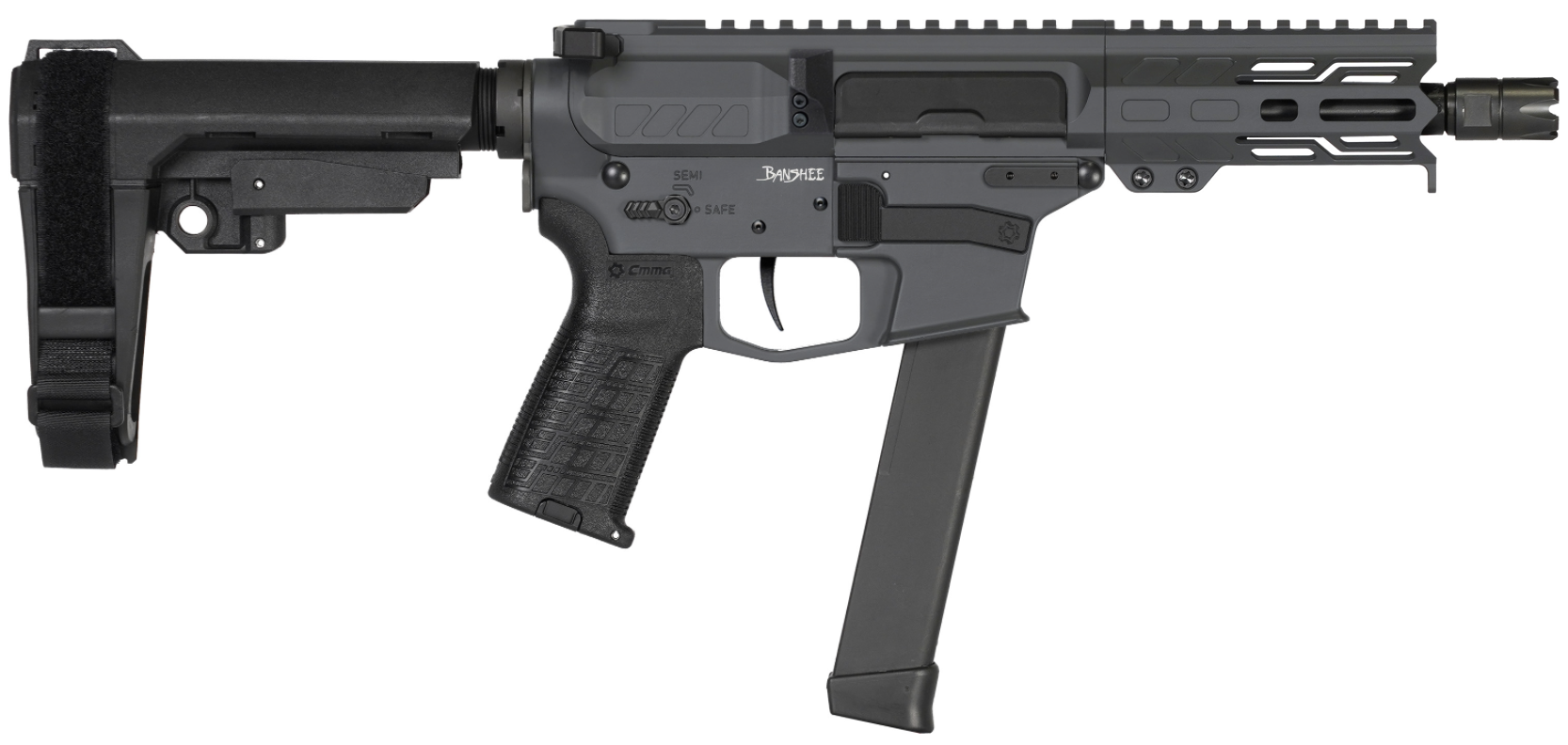 CMMG PISTOL, BANSHEE, MKGS, 9MM, 5″, SNIPER GRY W/ADJ RIP BRACE
