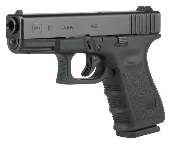 Glock's G19 standard compact pistol is versatile due to its reduced dimensions when compared with the standard-sized option. The 9mm G19 has found worldwide acclaim with both private and public security agencies. In addition to its use as a conventional service pistol, it is ideal for concealed carry or a backup weapon.