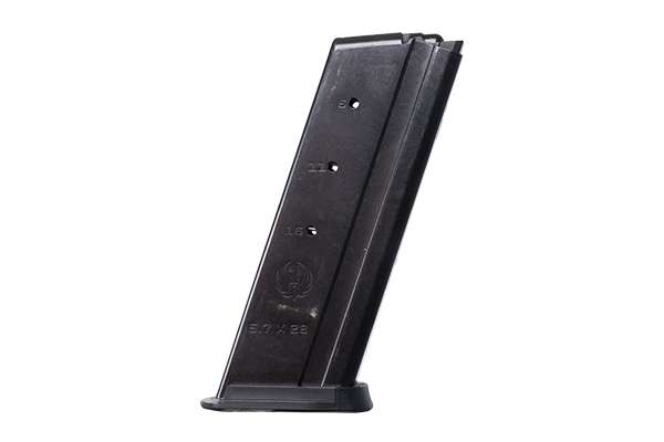 This black oxide alloy steel 20-round 5.7x28mm Genuine Ruger Factory Magazine is compatible with the Ruger-57 Pistol.