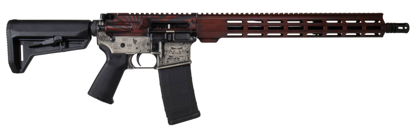 Shark Coast Tactical Celtic, Semi-automatic Rifle, AR, 223 Remington/556NATO, 16″ Barrel, Deep Laser Engraved Receiver, Celtic Design, Cerakote Finish, Distressed Green, Black Magpul MOE SL Stok, Black Magpul MOE Grip, Black M-LOK Free Float Handguard, 30 Rounds, 1 Magazine 300-060-1000-14