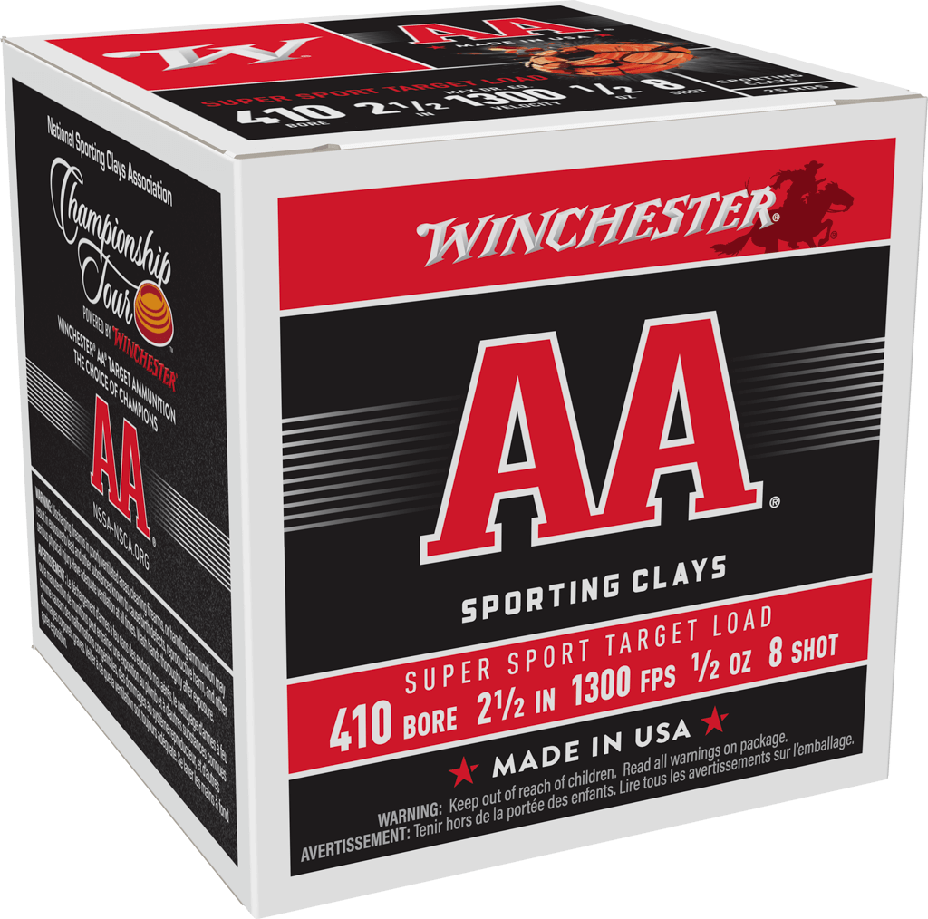 WINCHESTER AA SUPER SPORT 410GA 2.5″ #8 SHOT 1/2OZ 25RD BX 250RD CS