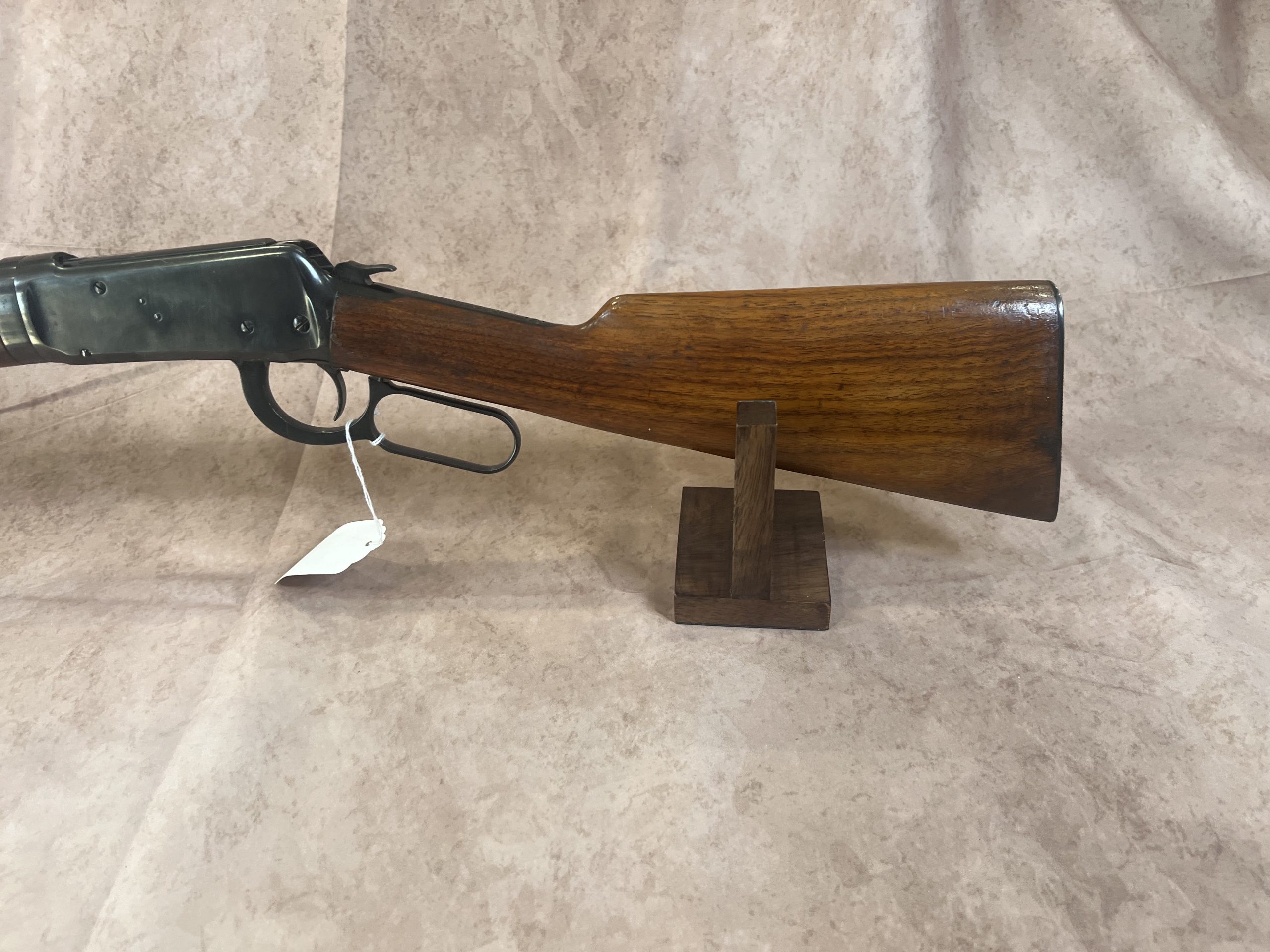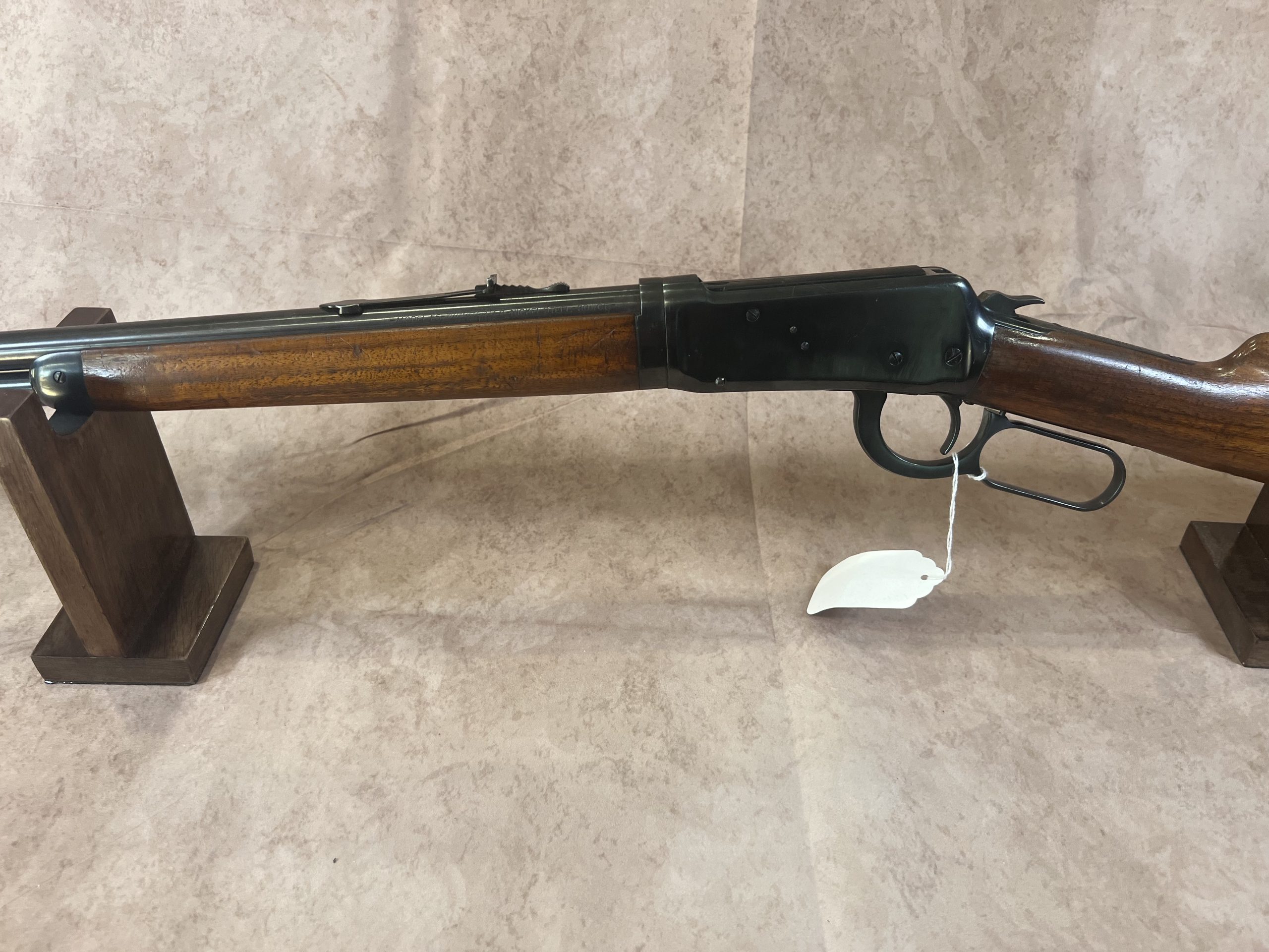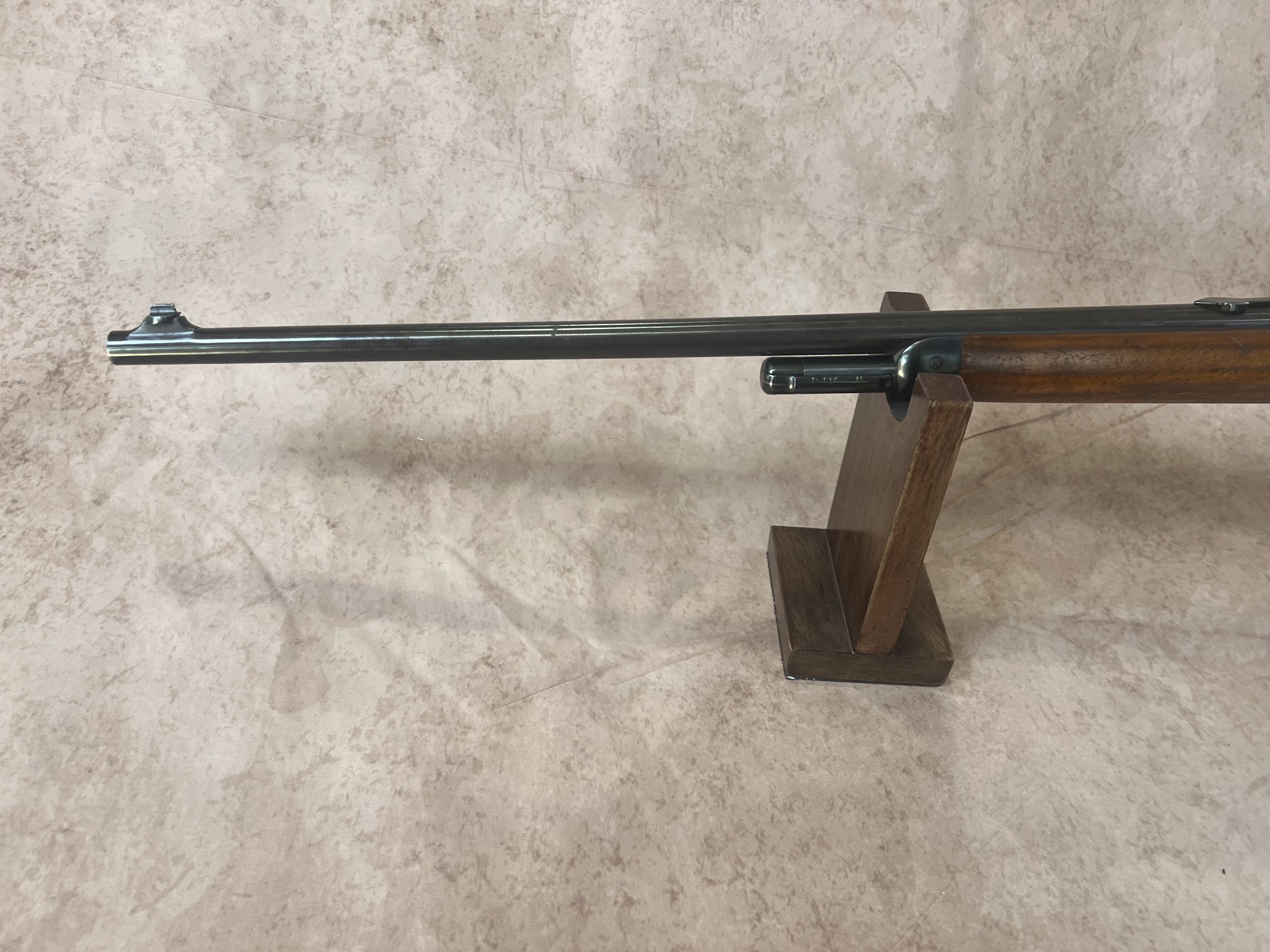 . Key features included a 24-inch barrel, a half-length tubular magazine, a walnut stock, and a blued finish.